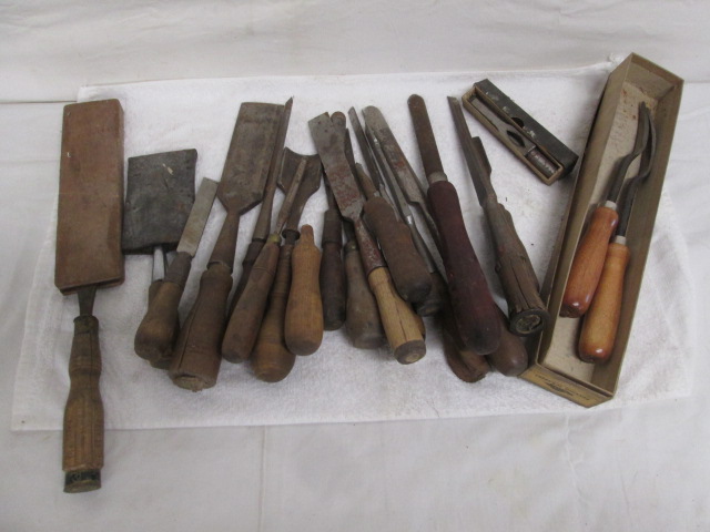 This collection of 20 vintage woodworking chisels for carving and carpentry are in vintage, good condition. Please preview.
