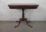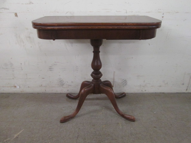Lovely Duncan Phyfe style flip top game table. The top rotates to reveal a small storage space.