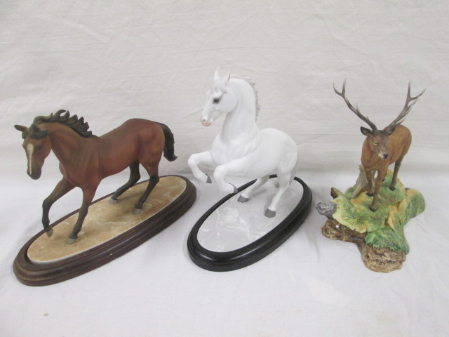 Beautiful trio of Lenox collectibles including one item from the "Wildlife of The Seven Continents" series and two from the "International Horse Sculptures" series. This trio features the 9" "Red Deer" sculpture, the 7" Champion of the Wind and a 9" Airs Above The ground" sculpture.