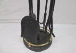 Lovely Pilgram brand fire place set featuring a log holder, broom, poker, log tongs and implement holder.