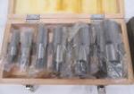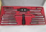 This set of six unnamed threading taps ranges in size from 1/4 - 1/8 to 1-1/4 - 11-1/2. These taps are held in a nice wooden box. Also included is a Craftsman Kromedge tap and hexagon die set. These items are in used, good condition. Please preview.