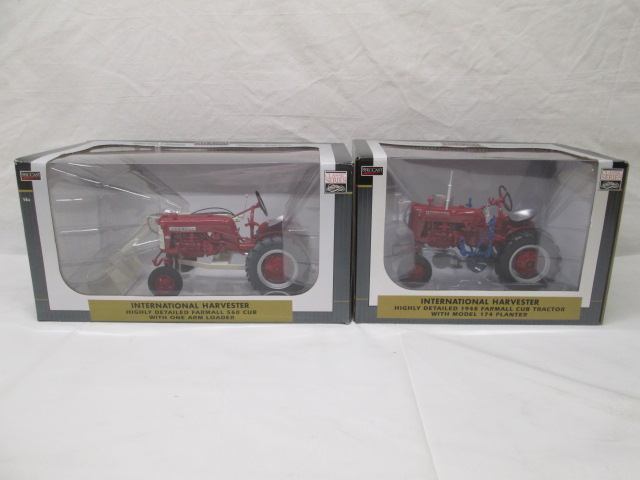 This pair of new SPECCAST collectible Classic Series 1/16 die cast metal replicas includes the International Harvester highly detailed 1948 Farmall, cub tractor with model 174 planter and a Farmall 560 cub with one arm loader. These items are in new condition. Please preview.