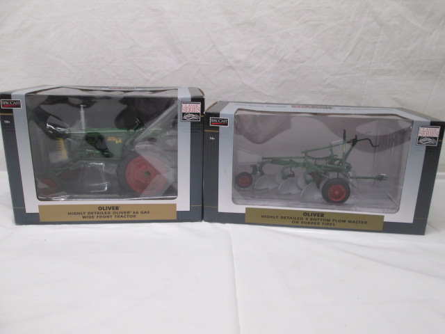 This pair of new Speccast collectible John Deere Series 1/16 die cast metal replicas includes an "Oliver" highly detailed 3 bottom plow master on rubber tires and an "Oliver" 66 wide front tractor. These items are in new condition. Please preview.