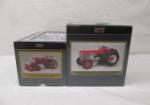 Pair of new SPECCAST collectible Classic Series 1/16 die cast metal replicas including an International Harvester Highly Detailed 1964 Cub Square Hood Tractor with Blade and Chains and a Massey Ferguson Highly Detailed 98 With GM Diesel Tractor with Front Headlights.