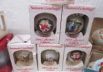 Stunning collection of Christmas items, including a Tiffany & Co. crystal ornament, five Li Bien ornaments featuring the age old skill of inside painting. These beautiful ornaments feature doves, and angels. Also included in this lot our eight Campbell’s Kids ornaments, six 2-1/2” Hudson, pewter Angel figures, five 6” "Night Before Christmas" pewter plates and more. These items are in good condition. One of the plates is dented. Please preview.