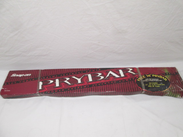This Snap-On brand prybar set includes a 36" prybar and additional 8", 12", 18" and 24" prybars. These items are new in their original box. The box itself appears to have water damage. Please preview.