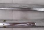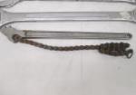 Assortment of vintage wrenches including three large combination wrenches (sizes 1-3/4", 1-5/8", 1-11/16") and a Blue Point pipe chain oil wrench. These are over 24" long