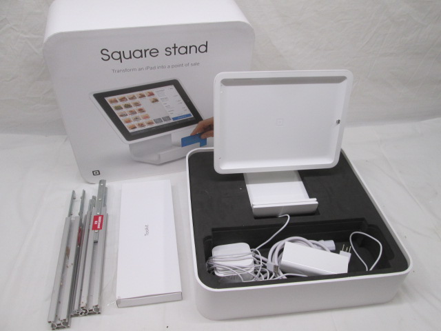 This "Square brand" payment square stand includes the square stand, USB hub to connect additional hardware, power adapter Square reader, security pin and installation tool kit. The Ipad is NOT included. This item is in its original (opened box). It is in used, good condition. Please preview.