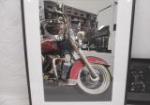 Pair of motorcycle related photos including a 15" X 20" framed photo by JP McMaulton of a motorcycle and a 14" X 8-1/2" Harley Davidson brand motorcycle photo with a quote stating "When the only goal that matters is the horizon."