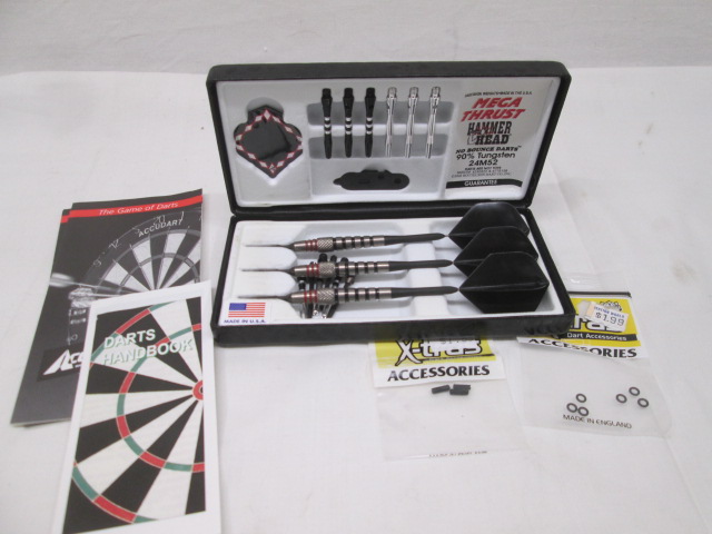 Nice set of Mega Thrust, Hammer Head 90% Tungsten no bounce darts in a lovely case.