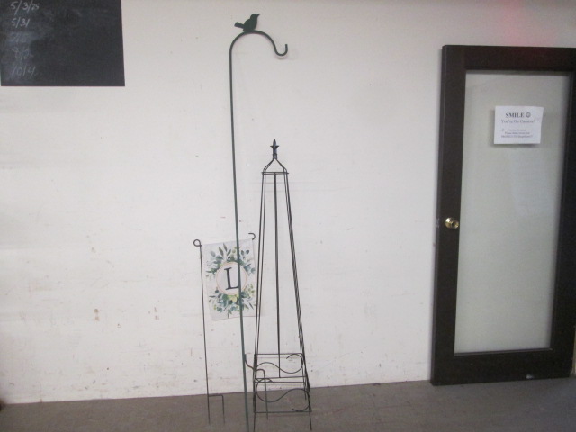This lovely 60" four sided garden trellis and 80" Shepard's hook for bird feeders or hanging plants, are in used, good condition. Please preview.