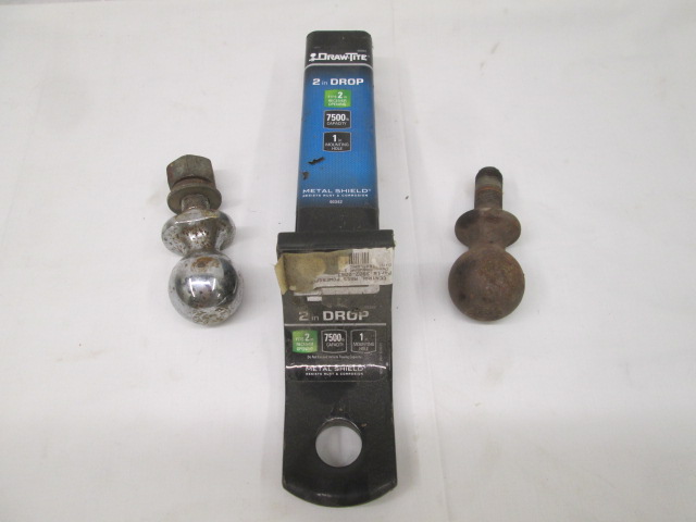 Draw-Tite 2 Inch Drop trailer hitch ball mount with two 1 7/8 hitch balls. In used, good condition. Please preview.