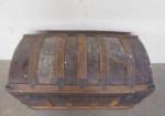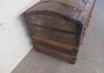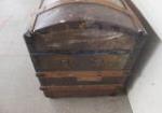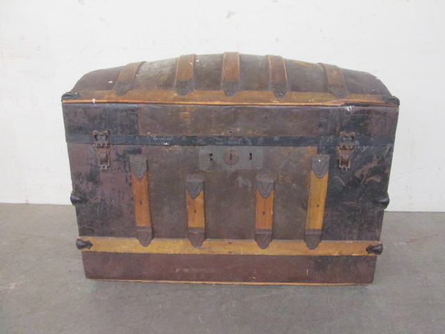 This antique Camel back or dome top steamer trunk measures 36"W X 22"D X 27"H. This item is in antique condition. Please preview.