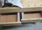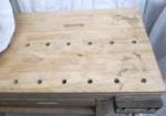 Wooden workbench with two drawers and two attached vices. Measures 53 1/2" wide x 34 3/4" tall x 24 1/2" deep. Please preview.