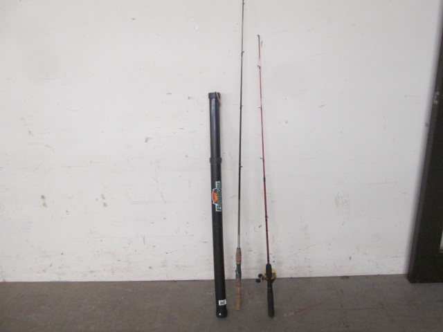 Lot of three fishing poles including a Johnson Citation, a Quantum Vantage graphite pole, and a Kastking Crius with a Flambeau plastic case. The Kastking looks unused while the other two are in used good condition. Please preview.