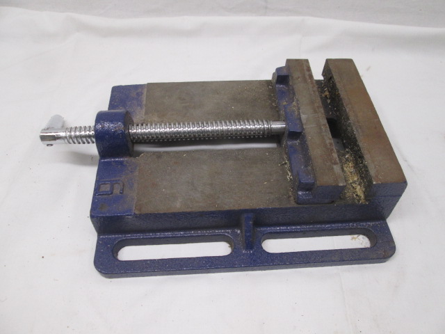 Cast iron drill press vice measuring 11" long x 9" wide x 2 3/4" tall. Please preview.