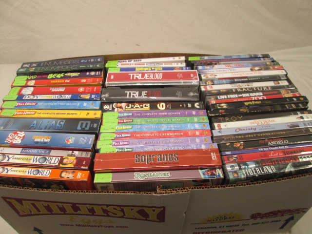 Box #2 Two layers of DVDs in the box. Includes a lot of TV series such as Full House, Saved By The Bell, True Blood and movies like We Bought a Zoo and so much more. Please preview.