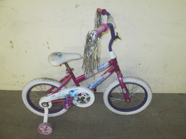 Cute little girl's 16" Huffy Sea Star beginner bike with training wheels.