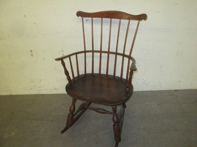 Beautiful antique Windsor-style rocking chair measuring 38" tall x 24.5" wide x 26" deep. Needs a little TLC as one of the back spindles is loose. Please preview.