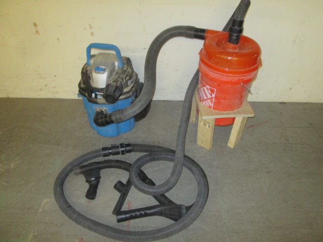 Dust collection system including a Vacmaster 5 gal wet/dry vacumm, a duststopper with hoses and attachments.