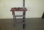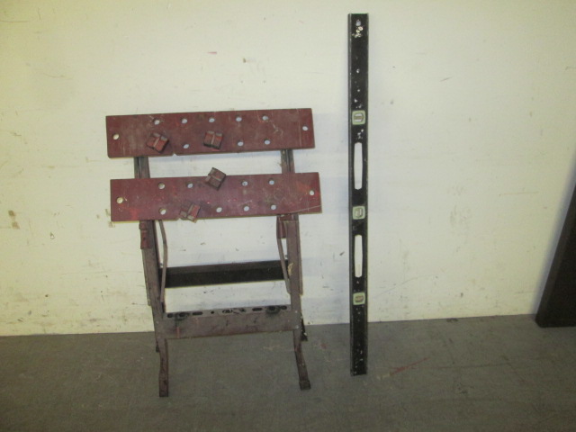 Portable workbench with a Stanley 4' long metal level. Workbench measures 13 1/34" tall x 23 3/4" wide x 24" deep. Please preview.