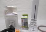 Power cord bin including an outdoor extension cord, a Qinliane model HR-519D 5 AC outlet with 3 USB and 1 USB-C, a Bell Howell lamp, HDMI cords and more.