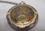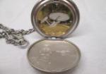 Franklin Mint Star Trek pocket watch with black leather pouch. The leather flap on the pouch is starting to separate and there is some discoloration on the back of the watch. Please preview.