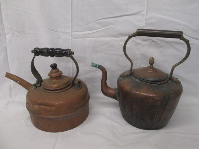This lovely pair of copper tea kettles are in used, condition. Please preview.