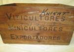 Nice pair of vintage wooden advertising crates featuring a Volpe Barbera grape crate and a F.F. Ferraz & C0. Madeira wine crate.