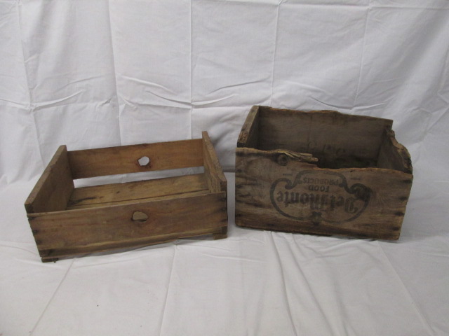 This pair of vintage advertising crates includes a DelMonte Fruit crate and a Tri-Boro Fruit Co. The DelMonte crate does have wear (damage) due to age and use. The Tri-Boro crate is in used, good condition. Please preview.