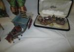 This darling assortment of miniature doll house items includes stoneware and metal kitchen items, dogs, food, and more. These items are in used, good condition. Please preview.
