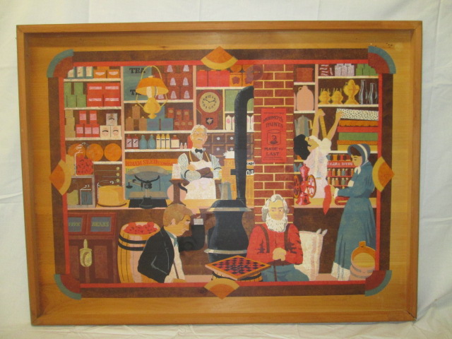 This distinctive 33"W X 25"H, A. Michael Sumate oil on wood folk art piece associated with the Mormon faith is in used, good condition. Please preview.