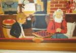Distinctive 33"W X 25"H, A. Michael Sumate (print) oil on wood folk art piece associated with the Mormon faith.
