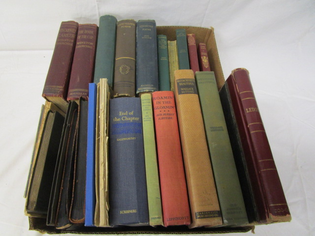 Assortment of 17 collectible vintage hard cover books including "The Inside of the Cup" by Winston Churchill, "Longfellow's Poems", "Massachusetts Beautiful" by Wallace Nutting and more.