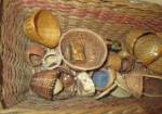 A basket full of twenty miniature doll house baskets.