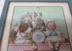 Charming framed "Clark's O.N.T. 1885 advertising calendar.