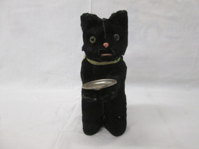 This darling 7" Steiff stuffed cat toy, with a wind up mechanism that when wound up triggers the cat to nod its head and open/close its mouth does work. It is in used, good condition. Please preview.