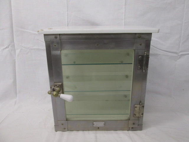 Vintage Antique 1930’s Emil J Paidar Co Antiseptic Sterilizer Cabinet Case. This nice three shelf, upright display case with lovely hardware has a metal frame and a marble top. This piece measures 13"W X 8"D X 13-1/2"H. This item does have a small area of damage to the corner of the marble top. It is in used, good condition. Please preview.