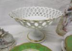 This nice collection of porcelain pieces includes a 5" Andrea by Sadek figurine playing the violin, a vintage Victorian figurine, a porcelain fruit bowl, seven stunning Coalport porcelain dessert plates and more. These pieces are in used, good condition. Please preview.