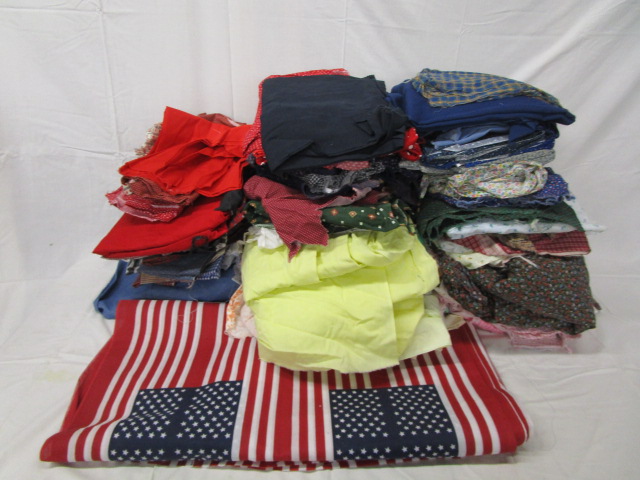 This large (overflowing) bin of cloth remnants includes various sizes, material type and prints. These remnants would be perfect for quilting. These remnants are in used, good condition. Please preview.
