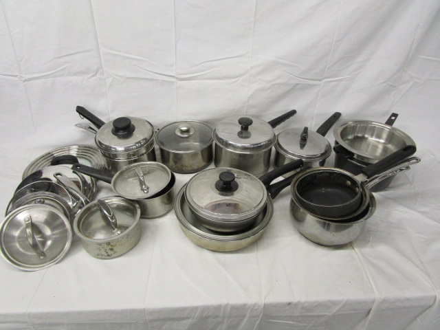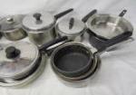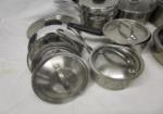 Selection of 10+ pots with lids including different brands. These items are in used, good condition and could use a good scrub. Please preview.