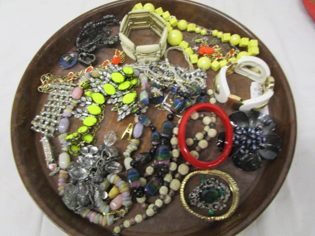 Darling collection of miscellaneous costume jewelry featuring statement necklaces with faux gems, cuff bracelets, beads and more.