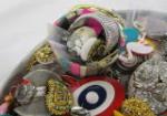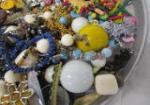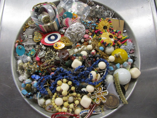 This interesting collection of miscellaneous costume jewelry features an Eastern Star necklace, an ivory style necklace, a blue stone necklace, earrings, beads and more. These pieces are in used, good condition. Please preview.