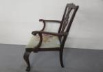 This gorgeous, antique mahogany Chippendale style arm chair features a beautiful needlepoint seat, cabriole legs, and distinctive ball-and-claw feet. This chair measures 24"W X 20"D X 38"H. This item is in previously owned, good condition. Please preview.