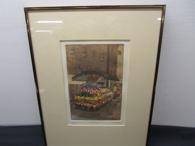 Fabulous 13" X 17" original, signed numbered (24/100) matted print titled "Flower Vendor".