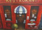 Darling 38" X 38" oil painting (print) on stretched canvas depicting an outdoor restaurant/cafe.