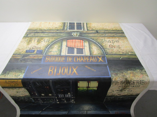 This gorgeous 38-1/2" X 50-1/2" painted canvas print of Thomas Pradzynski's "Le Bijoux". This print is marked Antoine 2003-X3921. This item is in previously owned, good condition. Please preview.