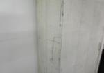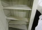 Vintage white, wooden farmhouse style primitive wooden Jelly cabinet with a large door and six shelves.