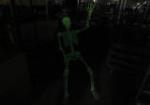 This Whimsical 60" glow in the dark heavy plastic poseable skeleton glows brightly. The photos do not illustrate how brightly he glows. His eyes do not light up. This item is in previously owned, good condition. Please preview.