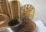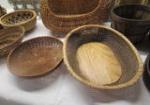 Large collection of fourteen baskets featuring a variety of sizes and styles including bread baskets, small apple baskets, herb baskets and more.